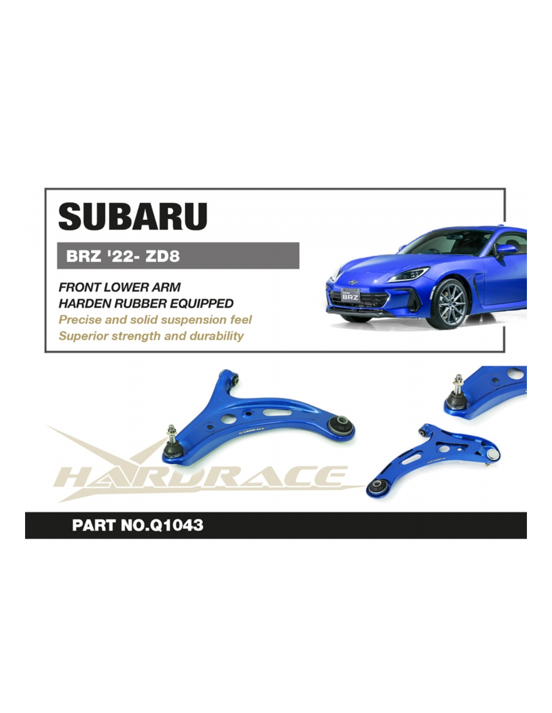 Braccio sospensione Hardrace per Subaru BRZ. Ideale per migliorare la precisione di guida, la stabilità dell'assetto e la risposta dello sterzo. Caratteristiche dal produttore : - Harden Rubber Equipped 2 PCS/SET