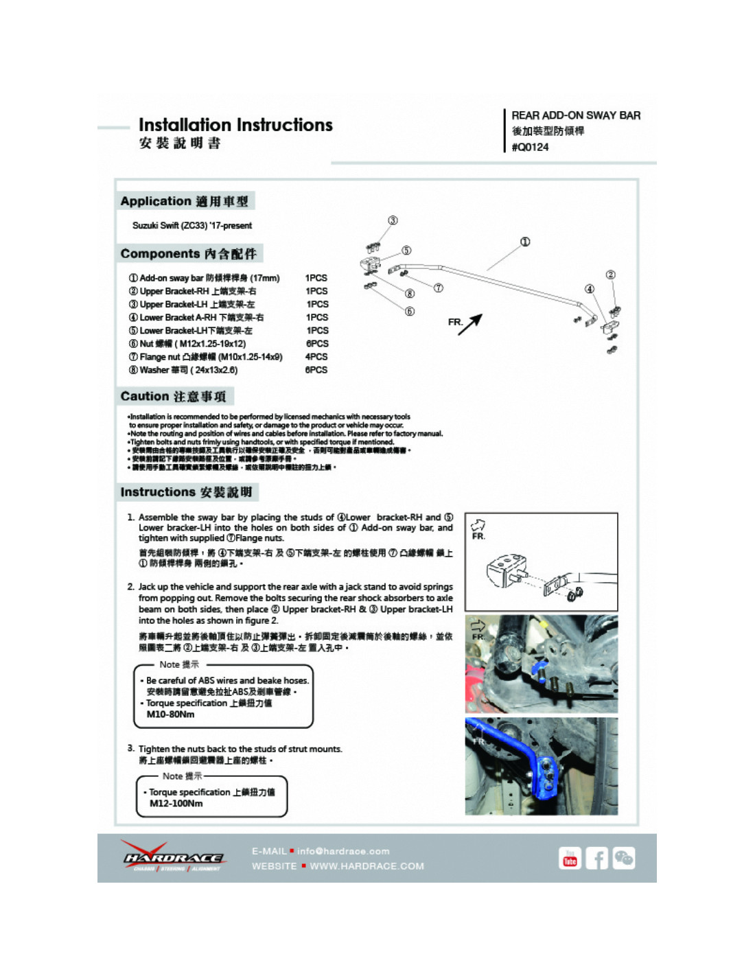Barra stabilizzatrice Hardrace per Suzuki Swift. Ideale per migliorare la precisione di guida, la stabilità dell'assetto e la risposta dello sterzo. Caratteristiche dal produttore : - 17 mm 5 PCS/SET * NOT FOR SWIFT SPORT 1.4T USE