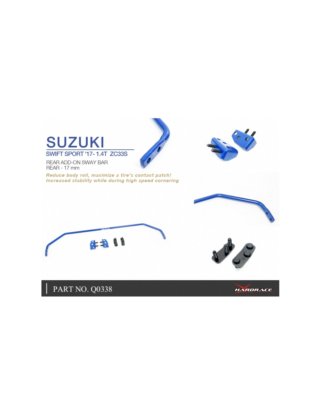 Barra stabilizzatrice Hardrace per Suzuki Swift. Ideale per migliorare la precisione di guida, la stabilità dell'assetto e la risposta dello sterzo. Caratteristiche dal produttore : - *For Sport 1.4T (ZC33S) Only 17 mm 5 PCS/SET