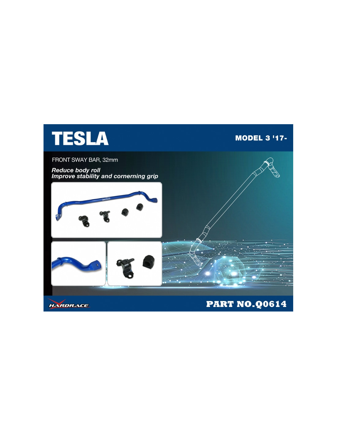 Barra stabilizzatrice Hardrace per Front Sway Bar Tesla Model 3. Ideale per migliorare la precisione di guida, la stabilità dell'assetto e la risposta dello sterzo. Caratteristiche dal produttore : - HARDRACE: 32 mm 5 PCS/SET