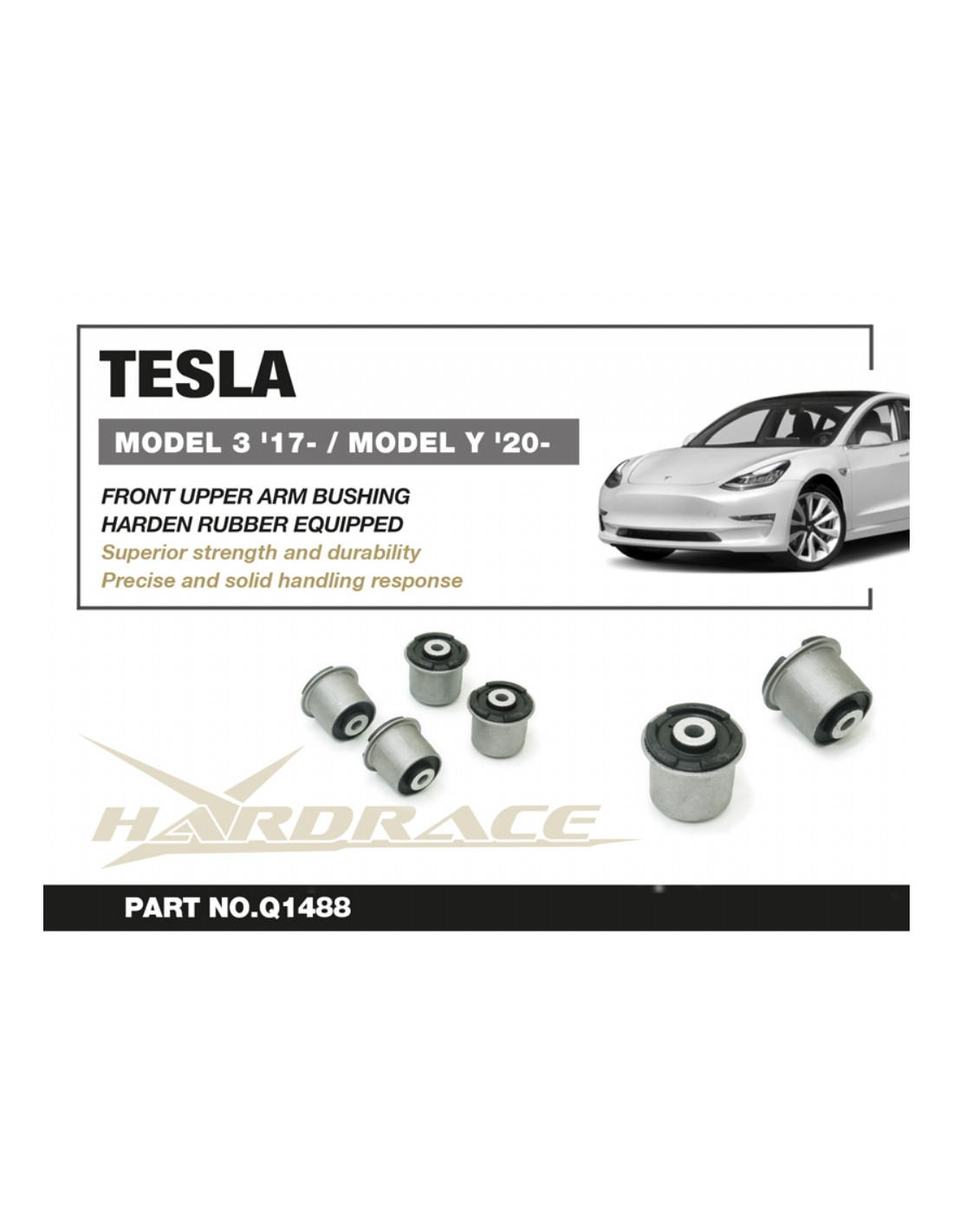 Silent block Hardrace per Front Upper Arm Bushing Tesla Model 3, Model y. Ideale per migliorare la precisione di guida, la stabilità dell'assetto e la risposta dello sterzo. Caratteristiche dal produttore : - Harden Rubber Equipped 4 PCS/SET