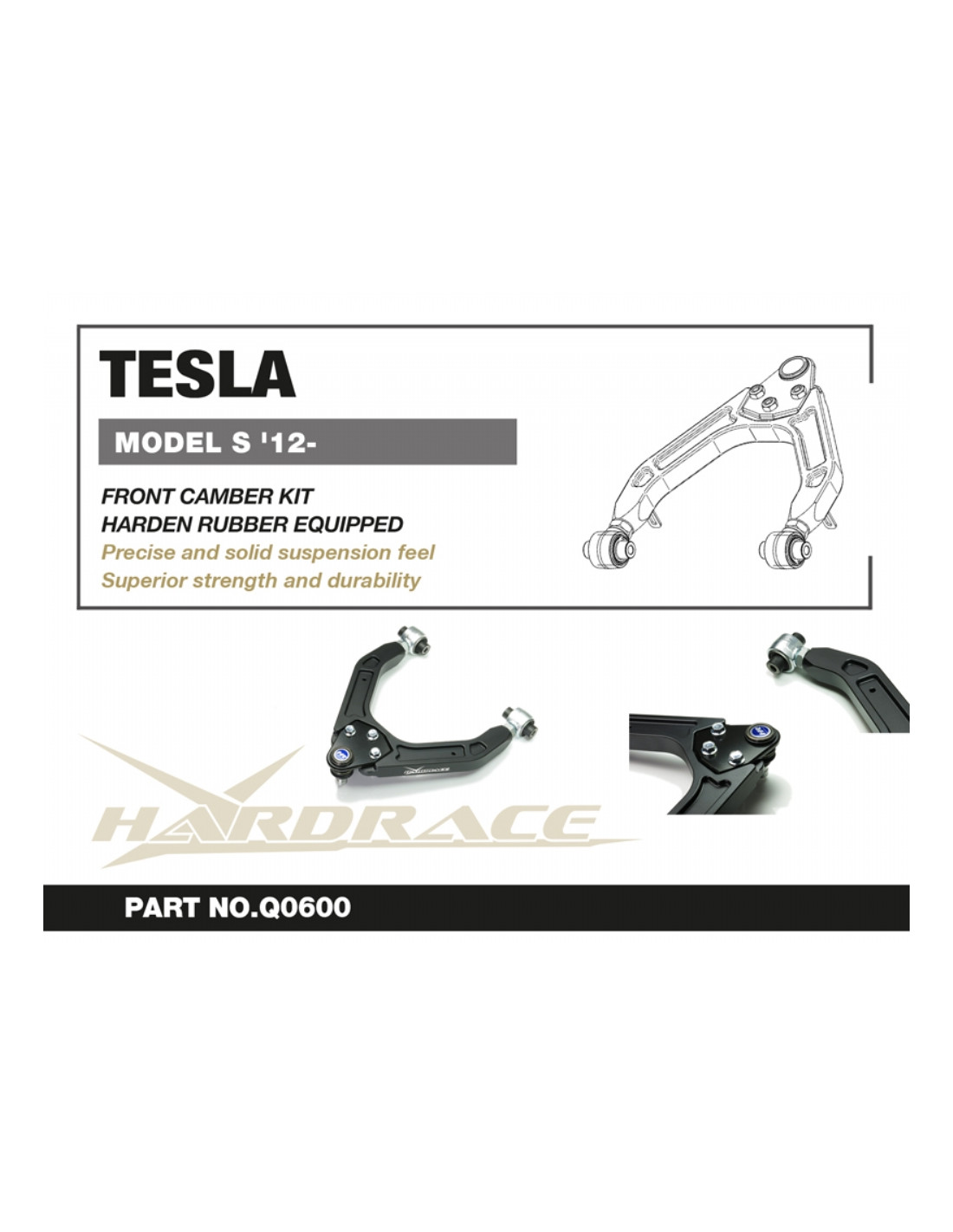 Braccio sospensione Hardrace per Front Upper Camber Kit Tesla Model s. Ideale per migliorare la precisione di guida, la stabilità dell'assetto e la risposta dello sterzo. Caratteristiche dal produttore : - Harden Rubber Equipped 2 PCS/SET *For '12-21 use only*For '12-21 use only