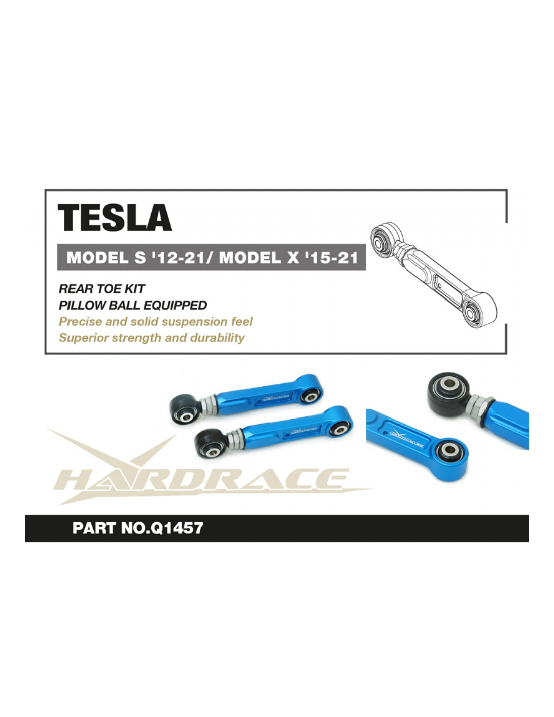 Braccio sospensione Hardrace per Rear Toe Kit Tesla Model s, Model x. Ideale per migliorare la precisione di guida, la stabilità dell'assetto e la risposta dello sterzo. Caratteristiche dal produttore : - Pillow Ball Equipped 2 PCS/SET