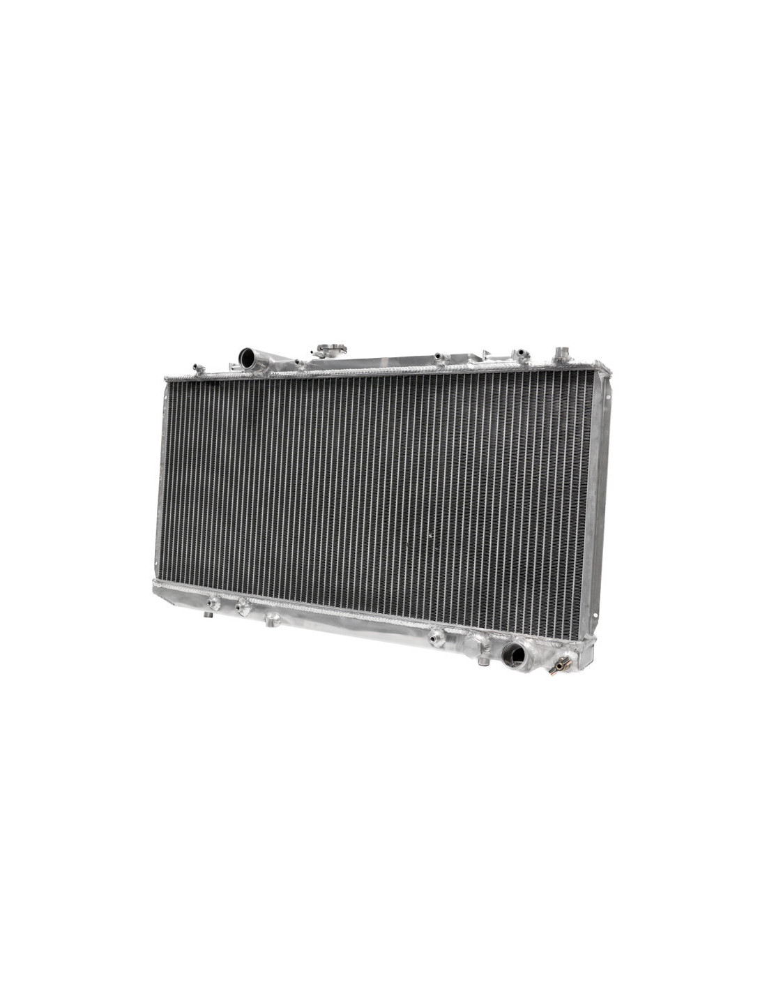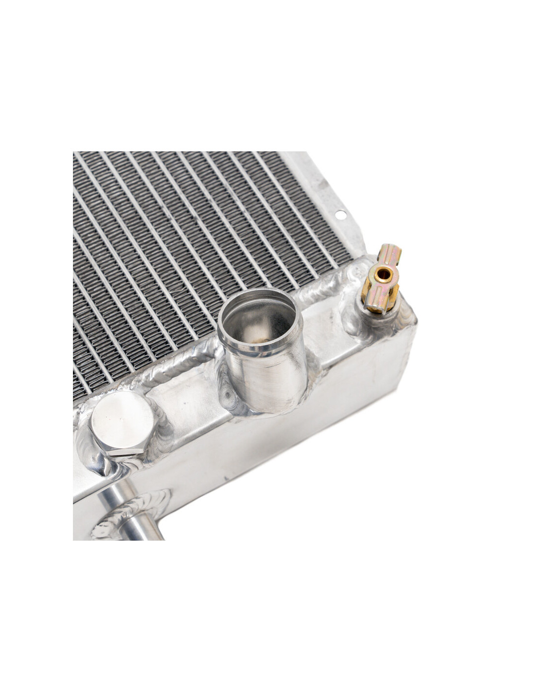 Radiatore in alluminio Cooling Solutions per Toyota Celica AT200. Che si tratti di giornate in pista o di competizioni, Cooling Solutions offre miglioramenti fondamentali per tutti i veicoli sportivi. I radiatori in alluminio aumentano il trasferimento di calore grazie alla loro conduttività superiore. Garantiscono un raffreddamento migliore rispetto ai radiatori di serie e temperature di esercizio inferiori per una maggiore affidabilità e durata. I radiatori Cooling Solutions sono realizzati in alluminio saldato TIG di qualità aeronautica e si installano al posto del radiatore esistente senza modifiche. Dimensioni Dimensioni totali del radiatore: 65,5 x 49 x 9,5 cm Dimensioni del nucleo: 62,5 x 35 cm Numero di file: 2 Applicazione: Toyota Celica 1.8L 16V dal 1993 al 1999 Codice telaio: AT200 Codice motore: 7A-FE