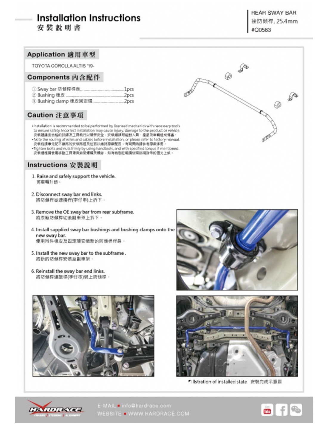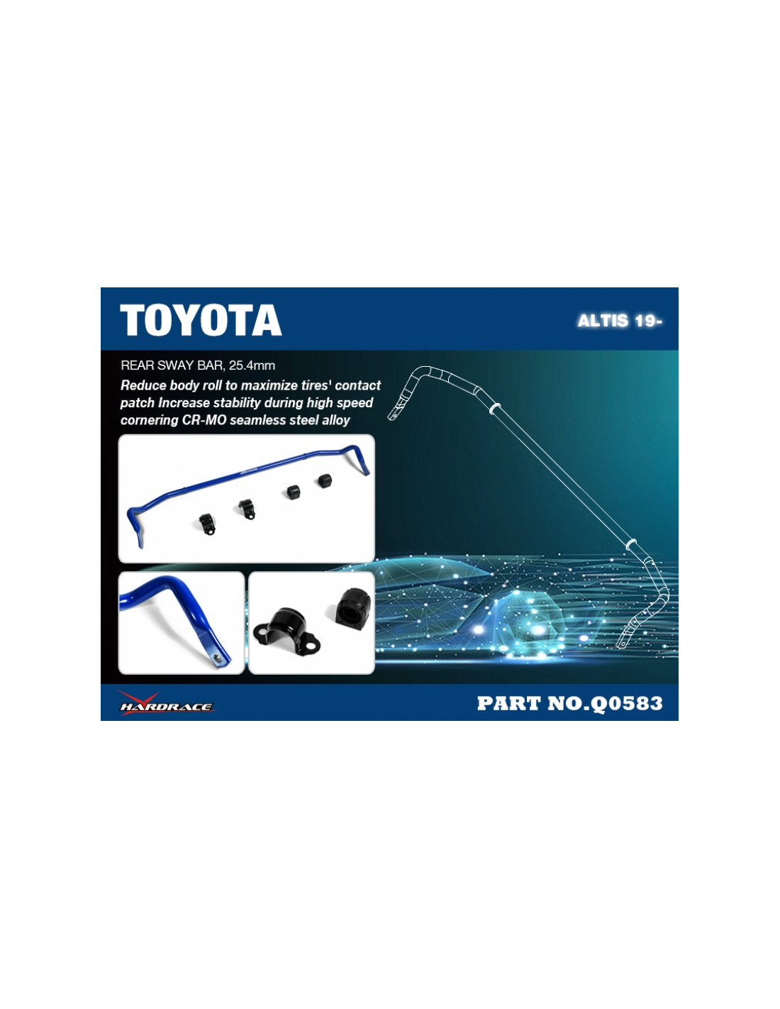 Barra stabilizzatrice Hardrace per Toyota Corolla/altis/auris. Ideale per migliorare la precisione di guida, la stabilità dell'assetto e la risposta dello sterzo. Caratteristiche dal produttore : - 25.4 mm 5 PCS/SET