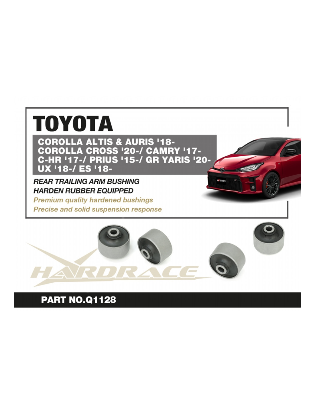 Silent block Hardrace per Lexus, Toyota. Ideale per migliorare la precisione di guida, la stabilità dell'assetto e la risposta dello sterzo. Caratteristiche dal produttore : - Harden Rubber Equipped " Corolla Cross '20-: For AWD Use Only 2 PCS/SET