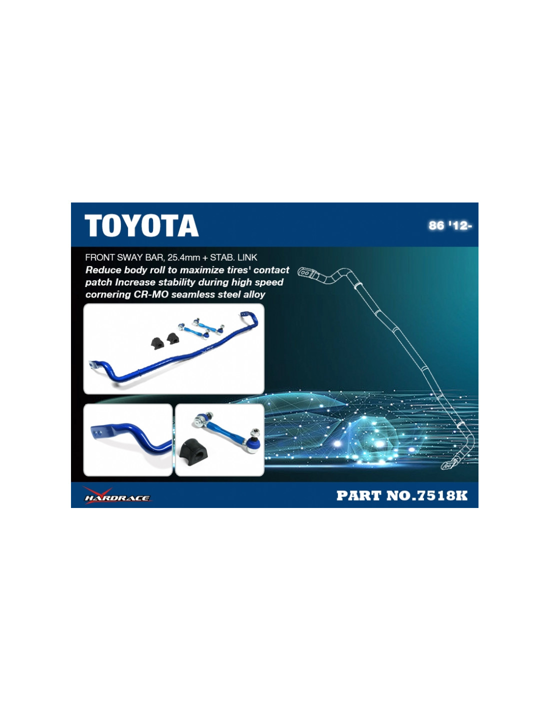Barra stabilizzatrice Hardrace per Scion FR-S, Subaru BRZ, Toyota 86. Ideale per migliorare la precisione di guida, la stabilità dell'assetto e la risposta dello sterzo. Caratteristiche dal produttore : - 25.4mm, 5PCS/SET Including Stabilizer Link and Bushings