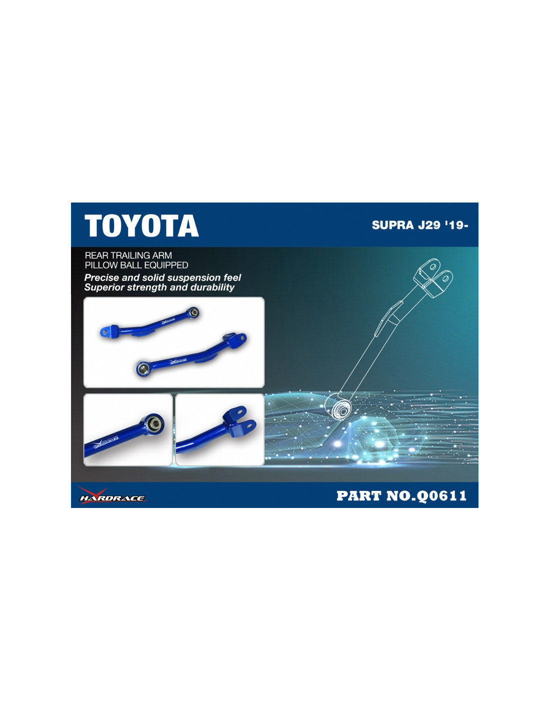 Braccio sospensione Hardrace per BMW 3 Serie, Z4, Toyota Supra. Ideale per migliorare la precisione di guida, la stabilità dell'assetto e la risposta dello sterzo. Caratteristiche dal produttore : - Pillow Ball Equipped 2 PCS/SET