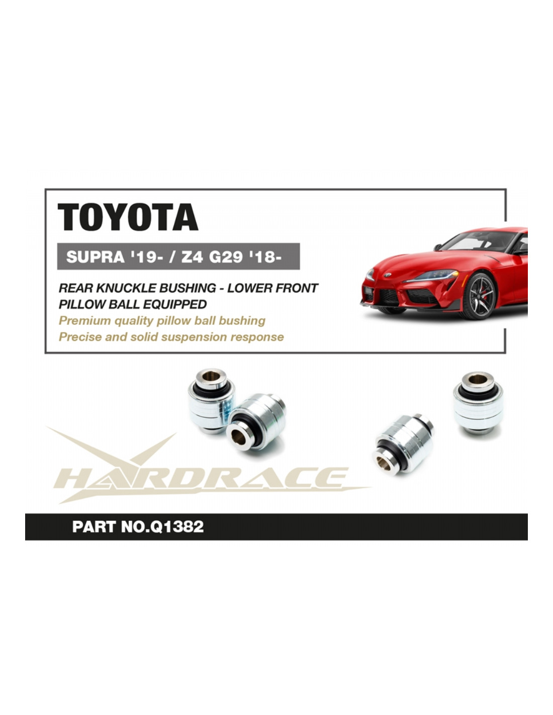 Silent block Hardrace per Toyota Supra, BMW Z4. Ideale per migliorare la precisione di guida, la stabilità dell'assetto e la risposta dello sterzo. Caratteristiche dal produttore : - Pillow Ball Equipped 2 PCS/SET