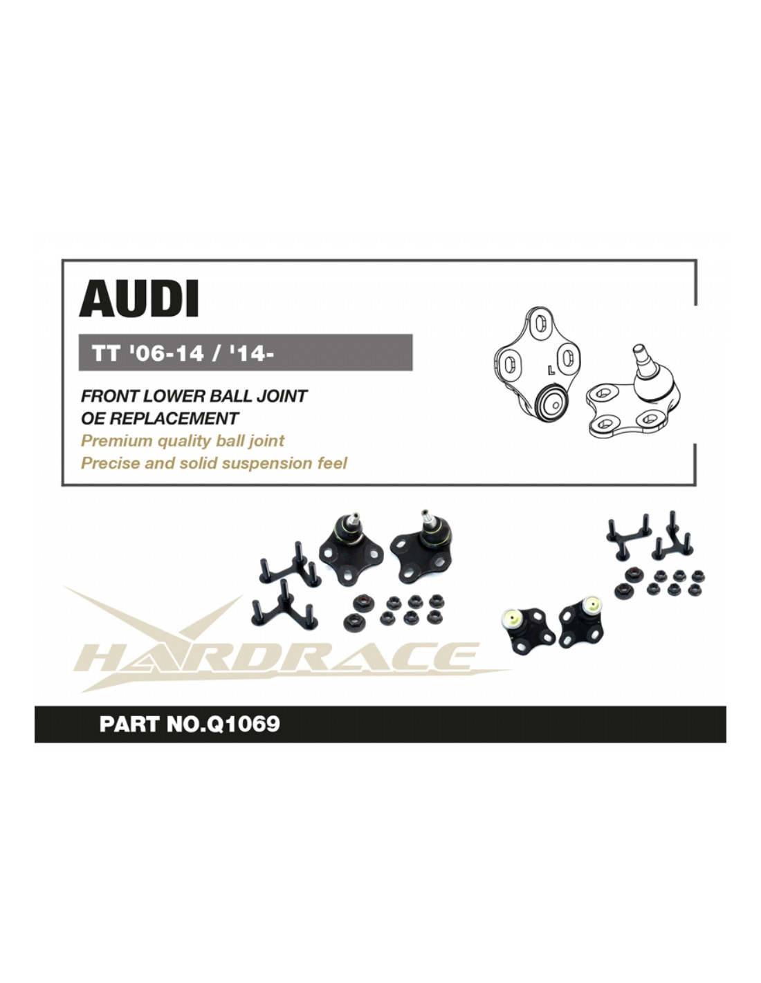 Snodo RC Hardrace per Audi TT. Ideale per migliorare la precisione di guida, la stabilità dell'assetto e la risposta dello sterzo. Caratteristiche dal produttore : - OE REPLACEMENT 2 PCS/SET