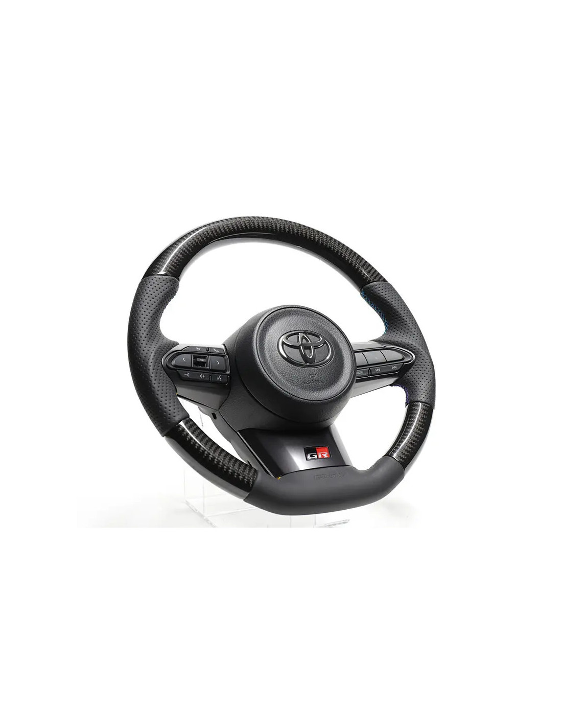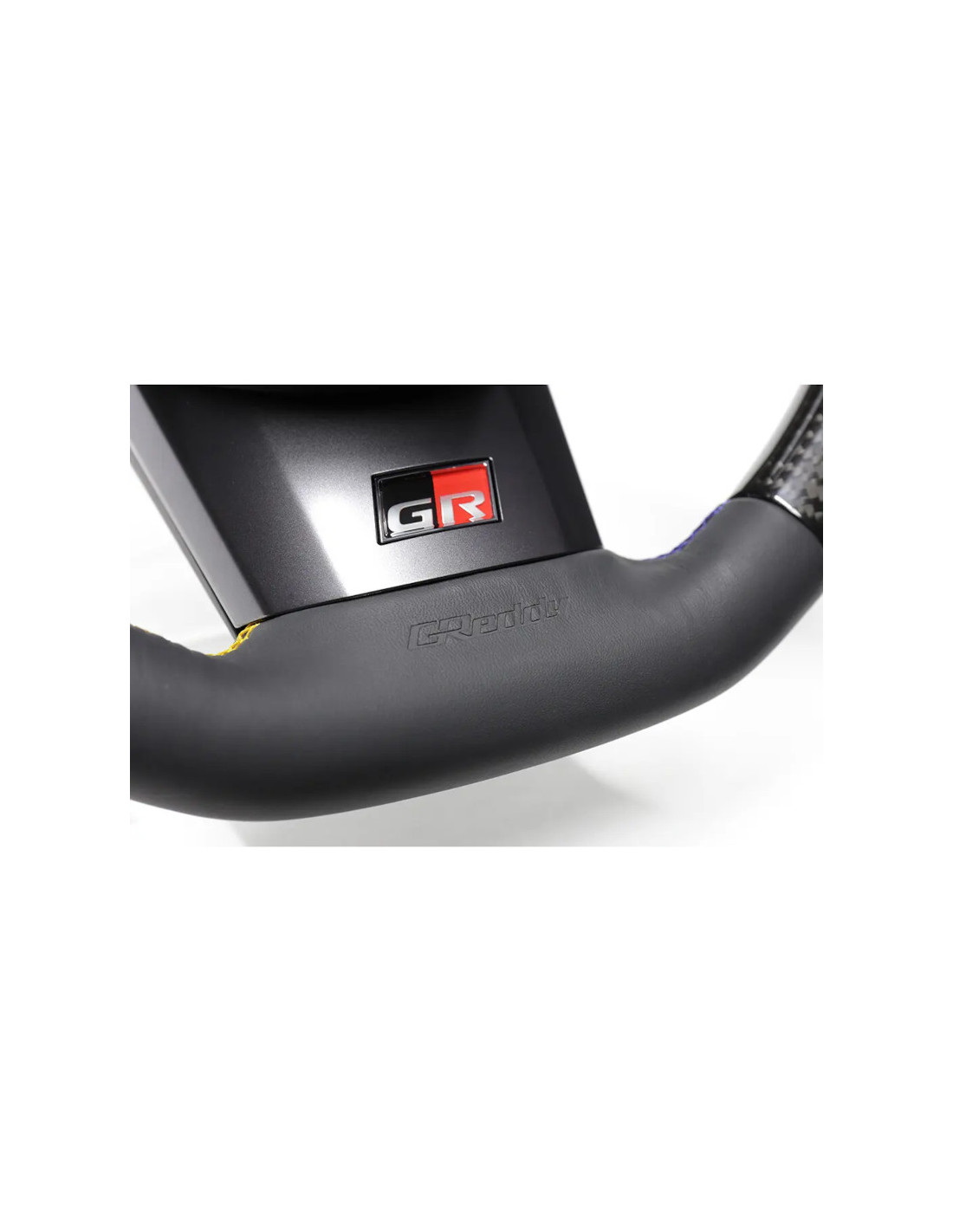Volante GReddy GXPA16 Adatto a Toyota GR Yaris GXPA16 Fedele al design del volante originale Diametro: 355 mm Rivestimento in carbonio nero e pelle di alta qualità Cuciture GReddy a 3 colori realizzate a mano Telaio leggero e altamente rigido Logo GReddy inciso Compatibile con i componenti originali del volante (eccetto il riscaldamento del volante) Volante GReddy in carbonio nero con cuciture a 3 colori per Toyota Yaris Specifiche Progettato per la Toyota GR Yaris GXPA16, questo volante GReddy migliora l'esperienza di guida offrendo un comfort superiore, pur mantenendo il design e la funzionalità del volante standard. È rivestito in vero carbonio nero e pelle con lati con impugnatura a pistola per una presa eccellente. Il logo GReddy rafforza il look sportivo. Con un diametro di 355 mm (10 mm in meno rispetto all'originale), questo volante consente una maneggevolezza più diretta limitando l'ampiezza dei movimenti. Poggia su un telaio rigido leggero e presenta cuciture a mano nei colori GReddy (blu, giallo e blu navy). Le parti fornite con il volante originale, l'airbag e le leve del cambio, possono essere trasferite così come sono su questo volante GReddy. Si noti che se il veicolo è dotato di volante riscaldato, questa funzione non sarà compatibile con questo prodotto. Gli interruttori airbag, le leve del cambio e le relative coperture non sono inclusi.