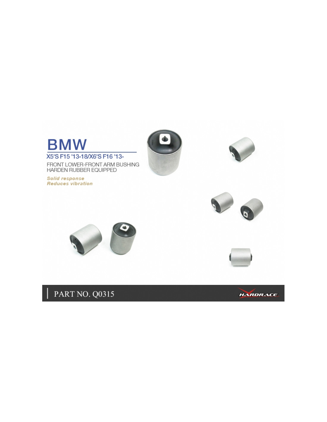 Silent block Hardrace per BMW X5, X6. Ideale per migliorare la precisione di guida, la stabilità dell'assetto e la risposta dello sterzo. Caratteristiche dal produttore : - Harden Rubber Equipped 2 PCS/SET